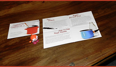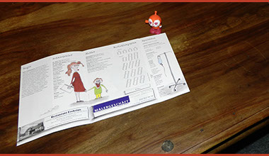 Theater Einhorn Dübendorf – Programm zum Stück «Alles uf Chrankeschii», Umschlag mit Fensterfalz