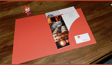 Sada AG – Dokumentenmappe mit Imagebroschüre und Visitenkarte